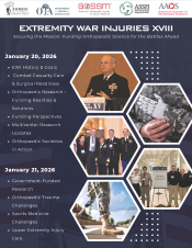 Join us in January for Extremity War Injuries XVIII: Securing the Mission - Funding Orthopaedic Science for the Battles Ahead. This Symposium will provide an overview of the current research funding landscape and strategies for the future, orthopaedic research updates, breakout sessions, the latest trauma and sports medicine challenges, and optimizing care of upper extremity injuries. Check out the Program below!
